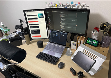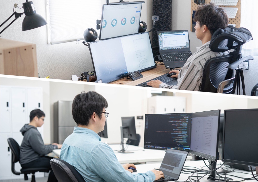 各プロジェクトごとに出社日が決まっており、2週間のうち計5日出社しています。通勤の必要がないため、終業後すぐにプライベートの時間に切り替えることができます。